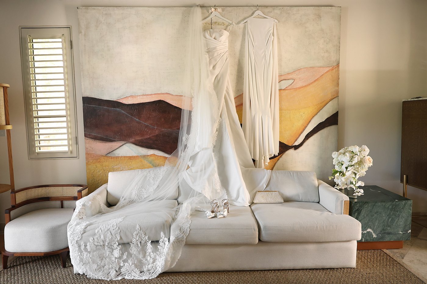 The day began in the tranquil suites of Fairmont, where Courtney and Rider got ready surrounded by their closest family and friends. The soft morning light filtered through the windows, illuminating the details of Courtney’s stunning dress as the talented team from Styling Trio worked their magic on her hair and makeup. Their expert touch enhanced her natural beauty, creating a timeless bridal look that perfectly matched the sophistication of the setting. Rider, calm and smiling, got ready nearby, sharing laughter and anticipation with his groomsmen as they prepared for one of the most meaningful days of his life.