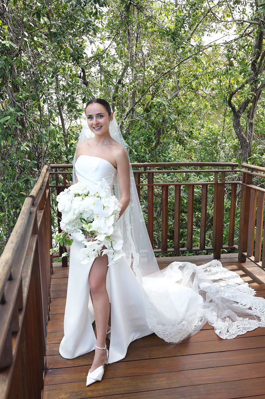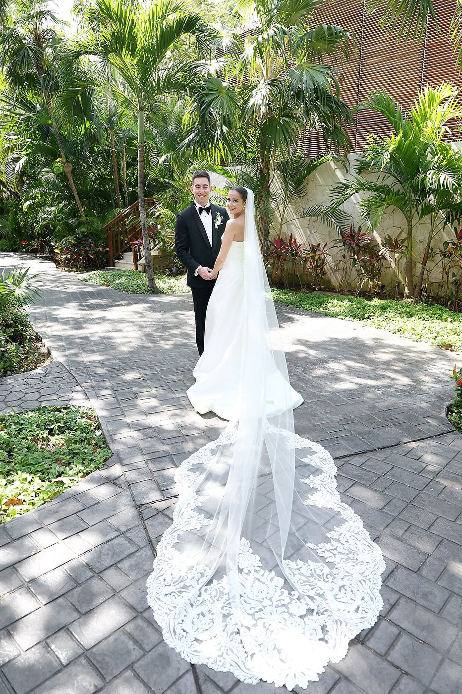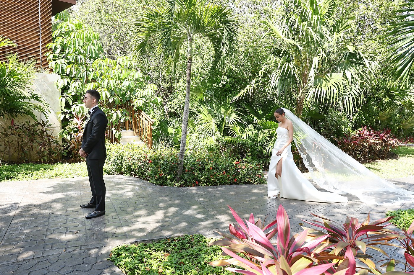 Once both were ready, we moved into one of the most touching moments of the day — the first look. Set within the lush pathways of Fairmont, surrounded by tropical greenery and the soft rustle of nature, Courtney and Rider saw each other for the first time that day. The emotion in their faces spoke louder than words. It was a quiet, intimate moment of pure connection — a beautiful pause before the joyful whirlwind to come.