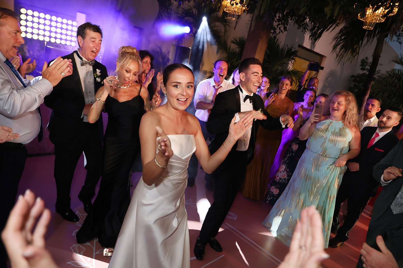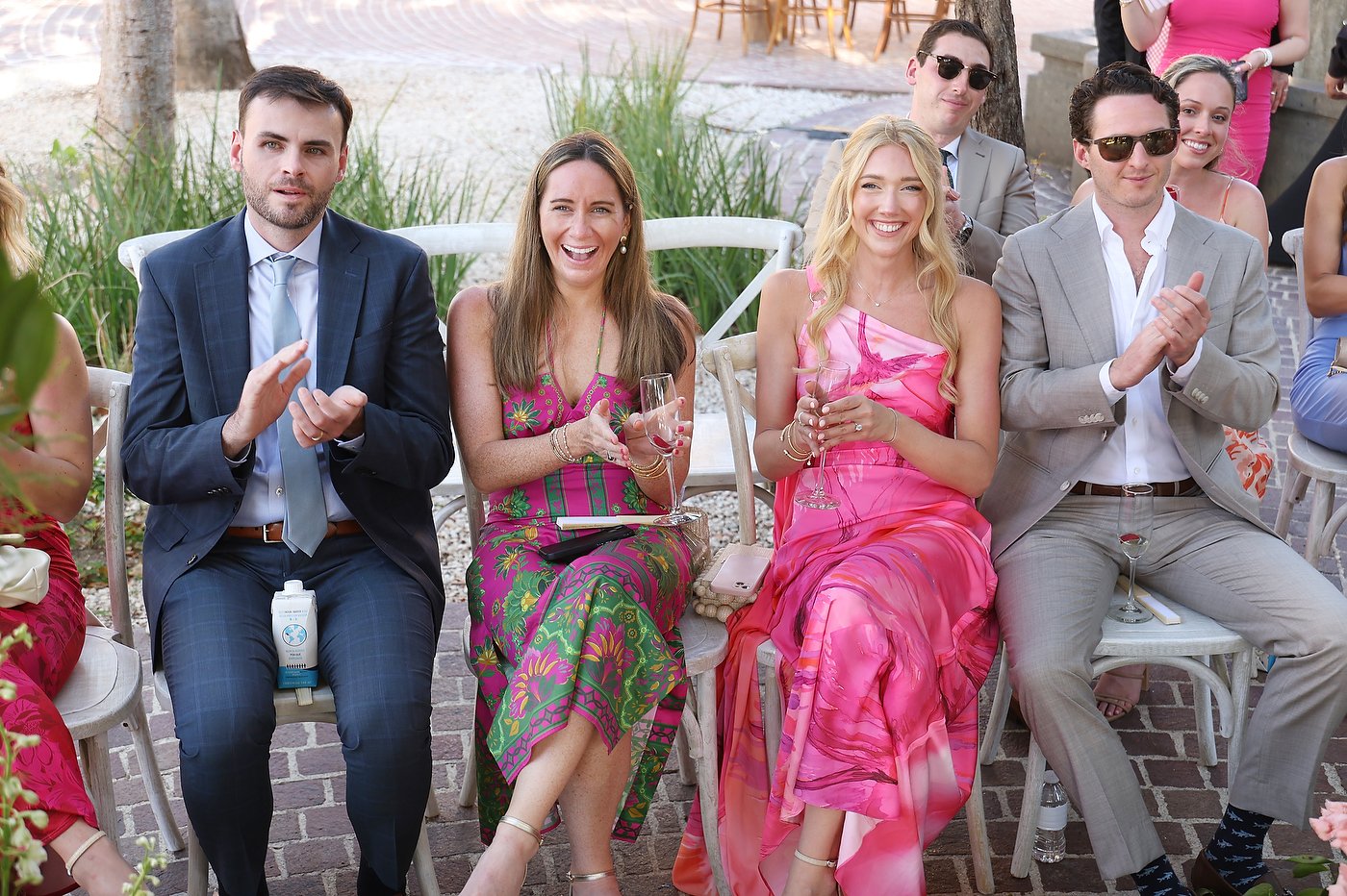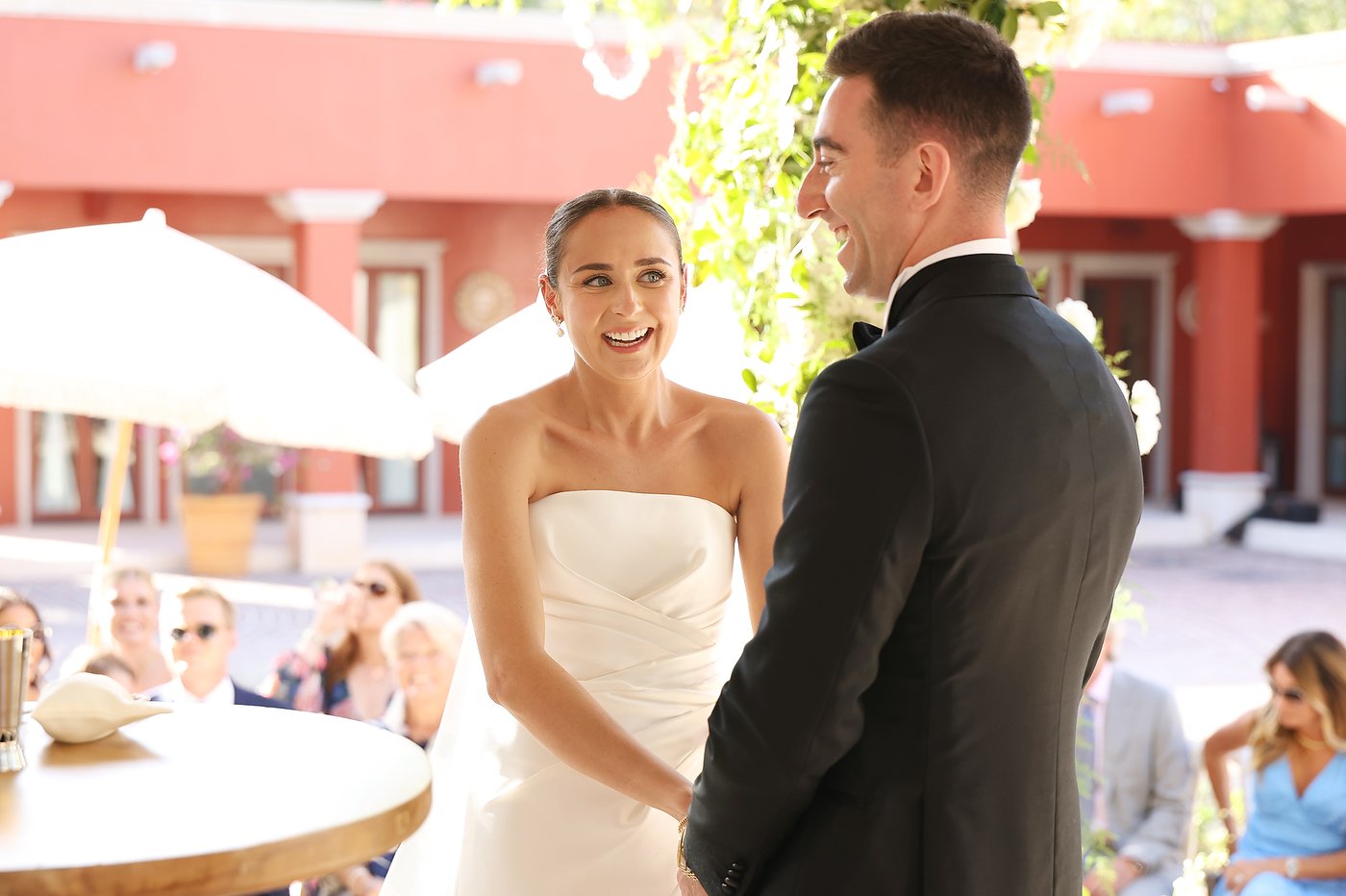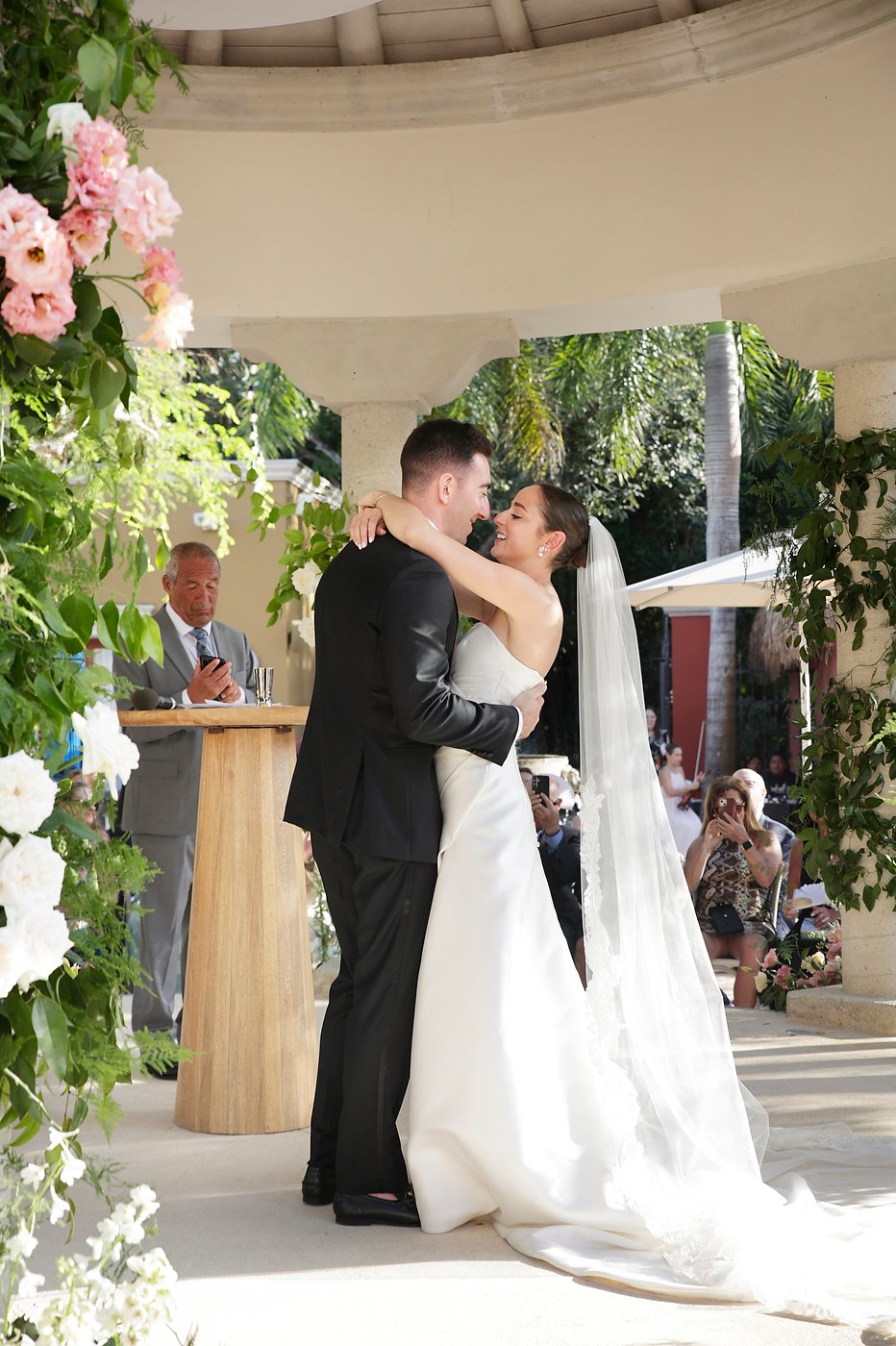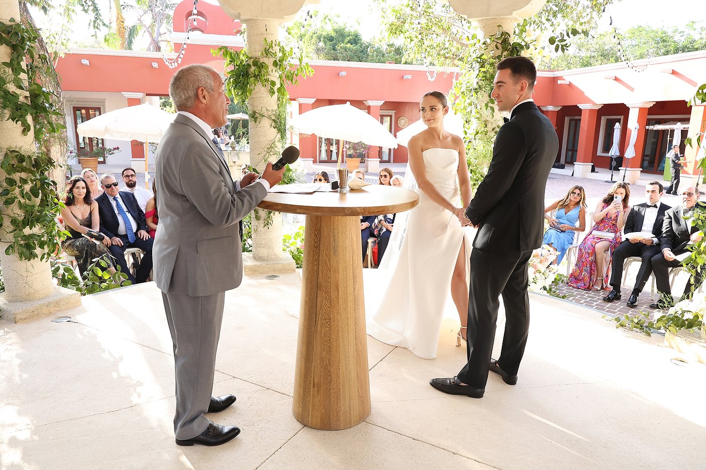From there, we transitioned to El Pueblito, Mayakoba’s charming and colorful village square, where the ceremony took place. The setting could not have been more picturesque — the ceremony was held in the kiosk at the center of the garden, surrounded by vibrant flowers, lush greenery, and the warm hues of the Mexican architecture. The atmosphere was filled with emotion as Courtney walked down the aisle, radiant and serene, while Rider waited for her under the gazebo. Their vows were sincere and moving, and there wasn’t a dry eye in the audience. The love between them was palpable, and the setting only amplified the sense of warmth and togetherness that defined the entire day.