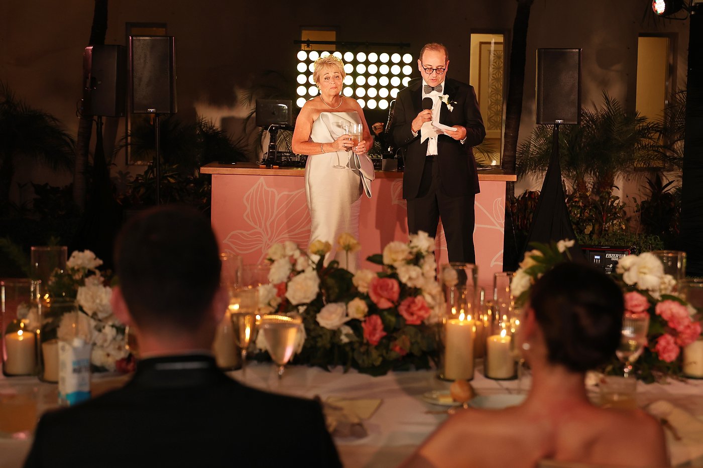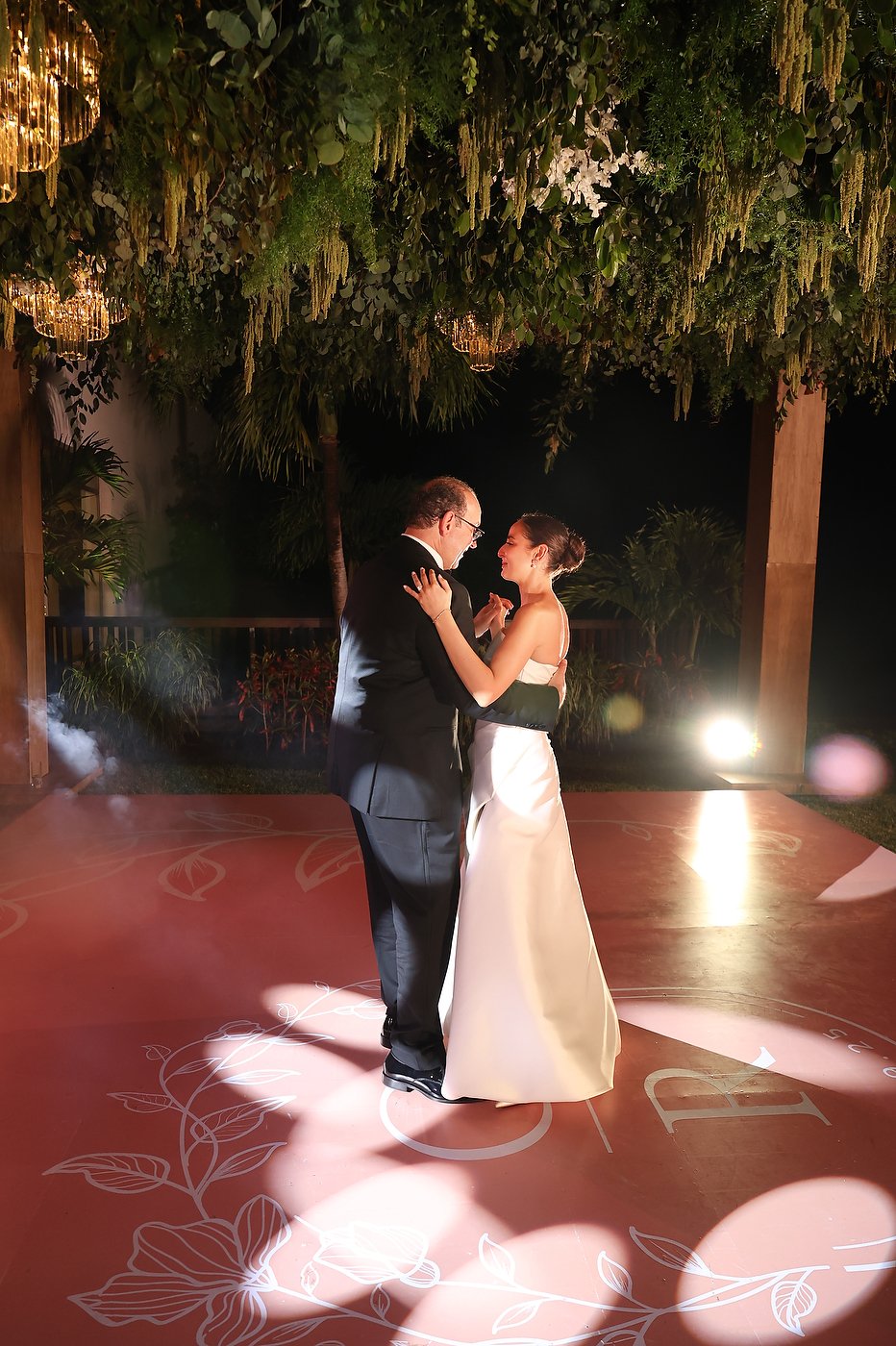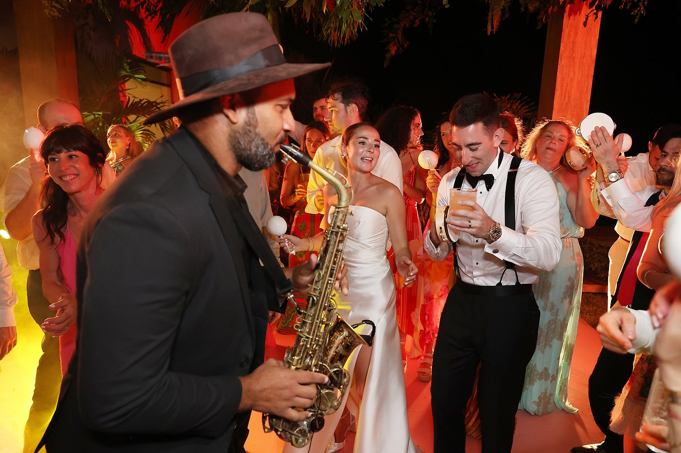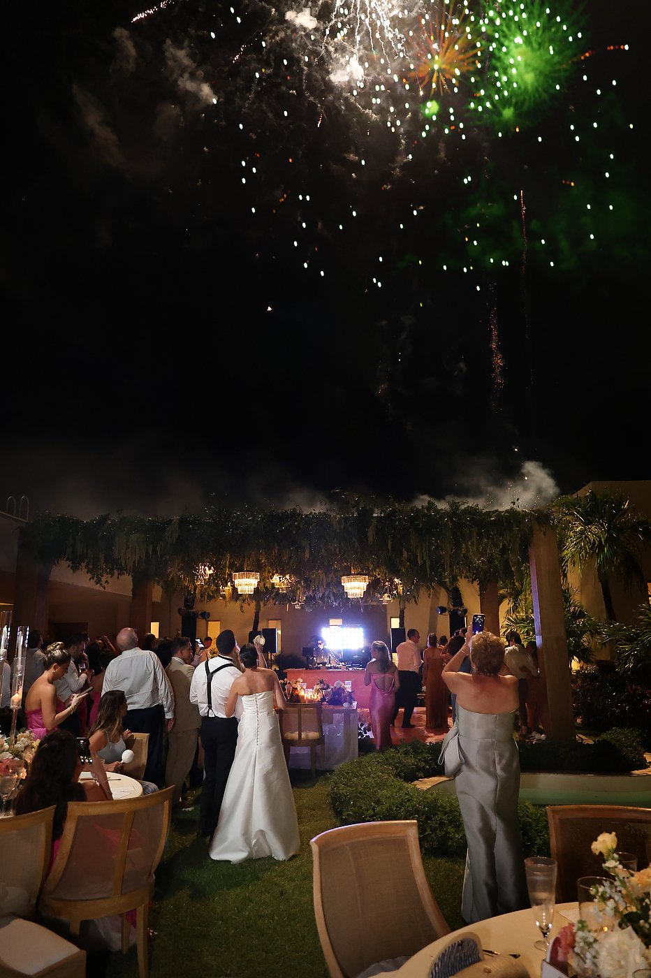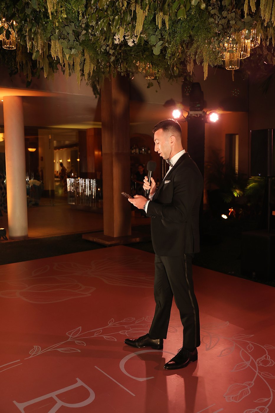 After the ceremony, we returned to Fairmont Mayakoba for the reception, held in the elegant Terraza Lawn area. The space was beautifully transformed by Canteiro Weddings, who handled both the planning and the floral design. Every detail was stunning — from the soft, romantic candlelight to the sophisticated table arrangements adorned with delicate flowers and greenery. The décor perfectly reflected Courtney and Rider’s refined taste and the relaxed luxury of the Riviera Maya.