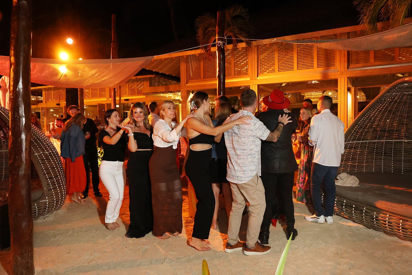 The following day brought a completely different yet equally exciting experience: a pool and beach party at Banyan Tree Mayakoba. With the turquoise waters of the Caribbean Sea and the elegant design of the resort as a backdrop, the event offered a perfect blend of relaxation and celebration. Guests enjoyed the sunshine, refreshing drinks, and music while spending time together in a laid-back tropical setting. Moments by the pool, walks along the beach, and candid interactions among colleagues created countless opportunities to capture natural and spontaneous images. The atmosphere was joyful and carefree, reflecting the purpose of the retreat, to celebrate the team’s accomplishments and strengthen connections.