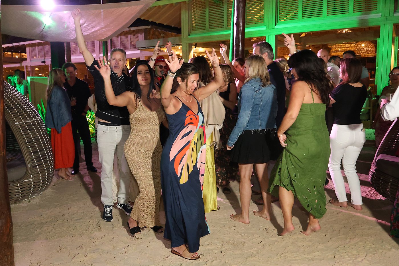 The retreat concluded with an unforgettable closing dinner held on the beach at Banyan Tree Mayakoba. As the sun set over the Caribbean, guests gathered for an evening that perfectly balanced elegance and warmth. The dinner setup was truly breathtaking. Long tables were beautifully decorated with abundant flowers and surrounded by soft candlelight, creating a romantic and sophisticated atmosphere right on the sand. The sound of the ocean, the warm evening breeze, and the glow of the candles combined to create an unforgettable ambiance.