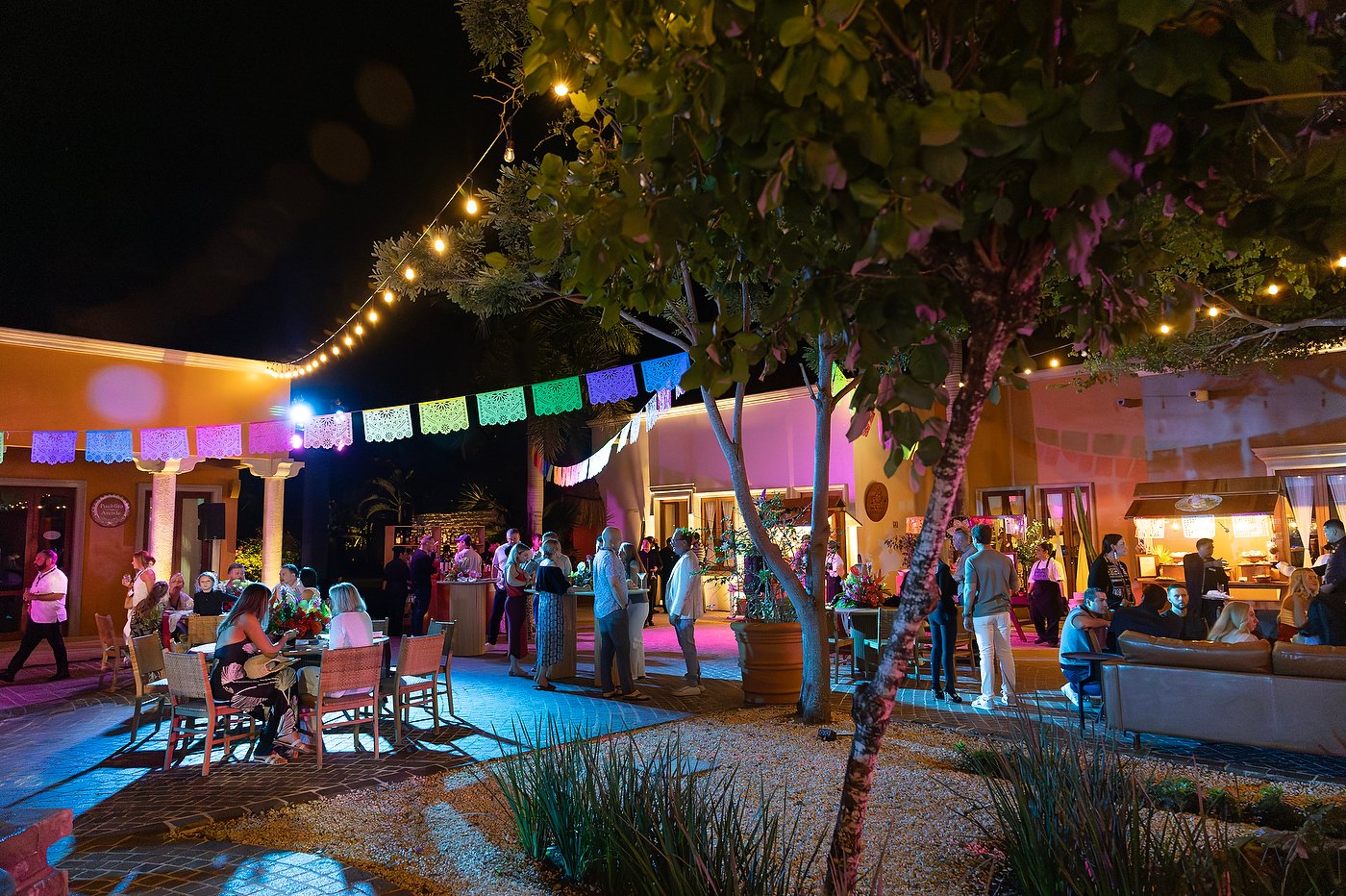 The celebrations officially began with a vibrant welcome party held at El Pueblito Mayakoba. Designed to resemble a traditional Mexican town square, El Pueblito offers a colorful and lively setting that perfectly reflects the spirit of the Riviera Maya. As the evening unfolded, guests enjoyed music, drinks, and delicious cuisine while connecting in a relaxed and festive environment. The warm lighting and the vibrant colors of the venue created a visually rich atmosphere that was ideal for photography. Our goal was to capture not only the stunning décor presented by Planner 1 and the venue itself but also the energy of the people; the laughter, conversations, and genuine interactions that made the evening memorable.